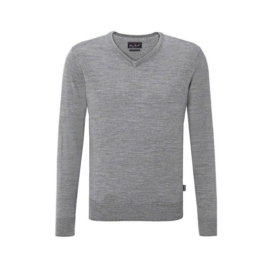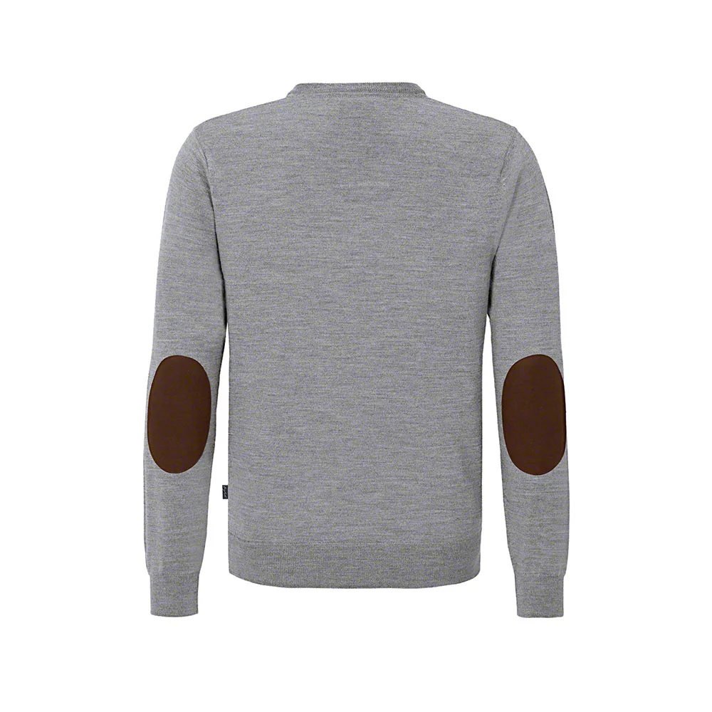 Klassischer, besonders hochwertiger Pullover mit V-Ausschnitt aus waschbarer Merinowolle. Die besonders feine Merinowolle garantiert einen extra weichen Griff, ein gleichmäßiges Maschenbild und einen angenehmen Tragekomfort. Gefertigt ist dieser kombistarke V-Pullover in klassischer Schnittführung und mit kontrastfarbigen Ellenbogen-Patches aus Velourslederimitat. Die gerippten, mit lycra® verstärkten Bündchen am Halsausschnitt, Ärmel und Saum unterstreichen die hochwertige Ausführung