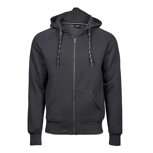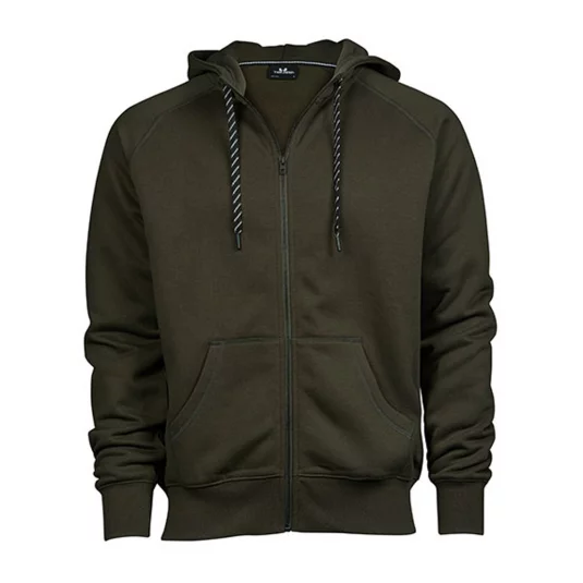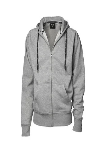 Trendige Sweat-Jacke mit Kapuze, Kordelzug in Kontrastfarbe, aufgesetzte Taschen, elastische Rippenbündchen an Ärmel und Saum, durchgehender Reissverschluss vorne, Doppelnähte