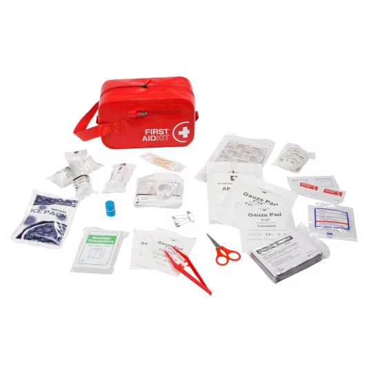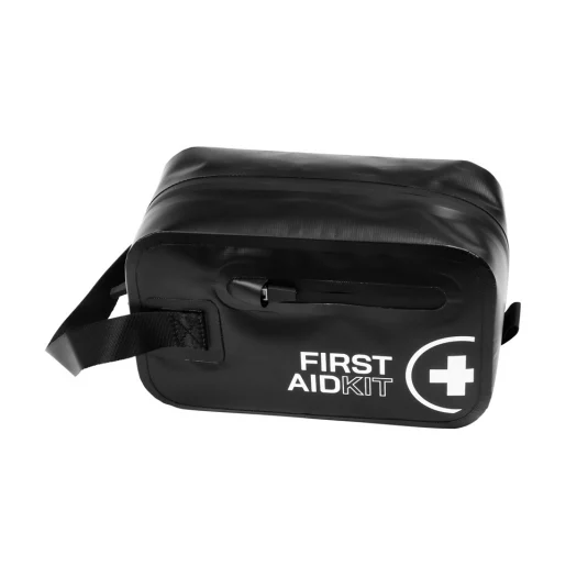 Umfangreiche Notfallapotheke in handlichen Etui aus strapazierfähigem Tarpaulin, beinhaltet hochwertige Erste-Hilfe-Befüllung, u.