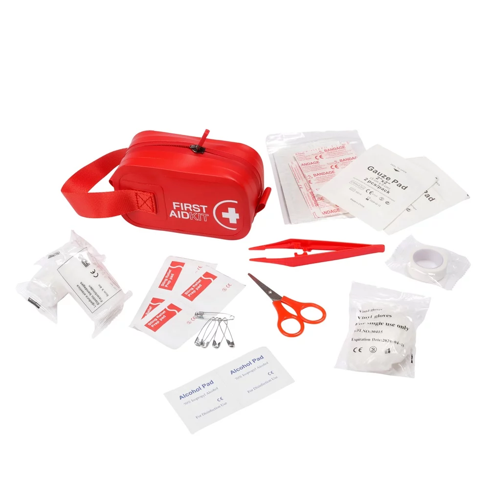 Kleines Etui aus strapazierfähigem Tarpaulin mit praktischer Erste-Hilfe-Befüllung, u.