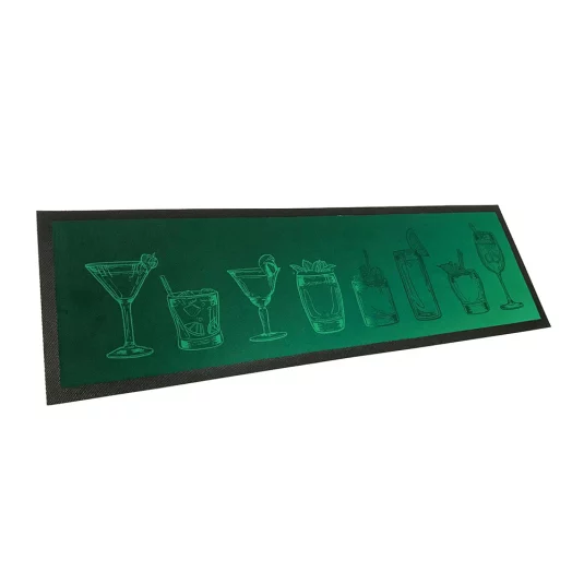 Gummibeschichtete Werbematte mit leicht absorbierender Polyesteroberfläche (100 %), welche im Sublimationsverfahren veredelt wird
