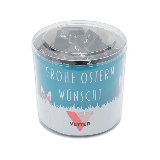 Swiss Made – feinste Pralinen aus Schokolade mit Praliné-Füllung und ganzen Haselnüssen, einzeln verpackt, in der Trommel geliefert, Haltbarkeit ca.