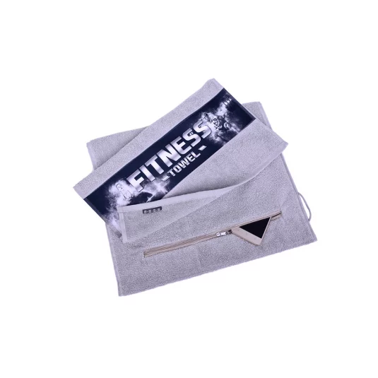 Fitness-Tuch aus Baumwoll-Frottee mit praktischem Reissverschlussfach für Ihr Handy, Portemonnaie, Schüssel uvm.