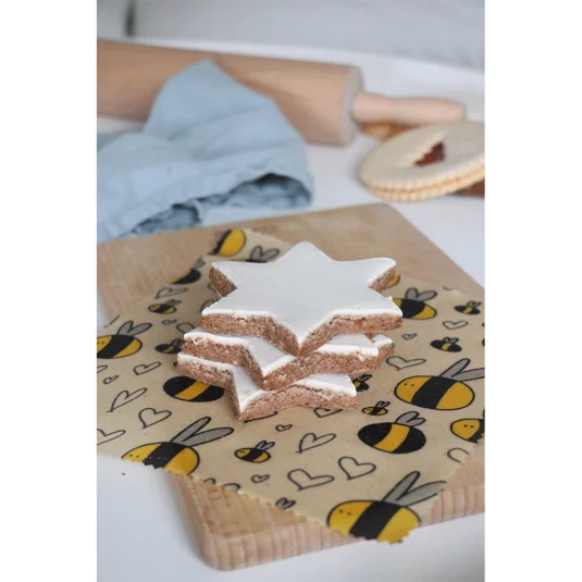 Be(e) the change - die nachhaltige Alternative zur Plastik- und Alufolie! Wiederverwendbares Bienenwachstuch mit Schweizer Bio Bienenwachs, Bio Kokosöl & Baumharz auf 100% Baumwolle in der Schweiz handgewachst, luftdurchlässig und von Natur aus antibakteriell, so bleiben Lebensmittel länger haltbar und frisch