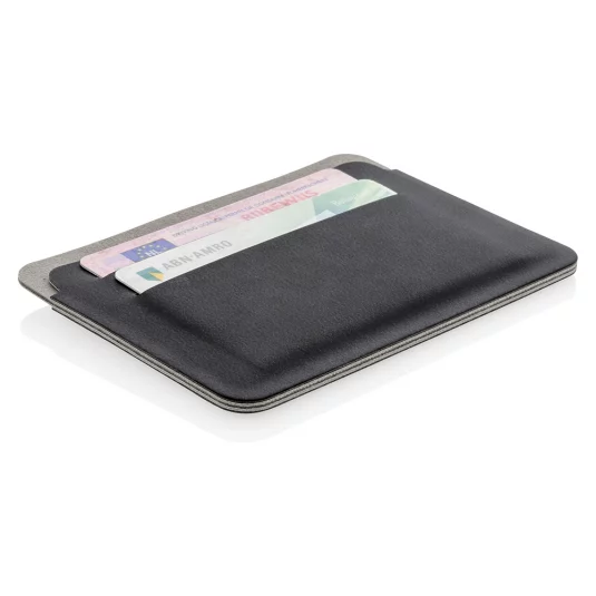 Schutzhülle aus Kunstleder, 4 Kartenfächer gewähren Platz für bis zu 8 Kreditkarten, der Inhalt wird durch RFID blockierendes Material geschützt und verhindert damit garantiert einen Datendiebstahl