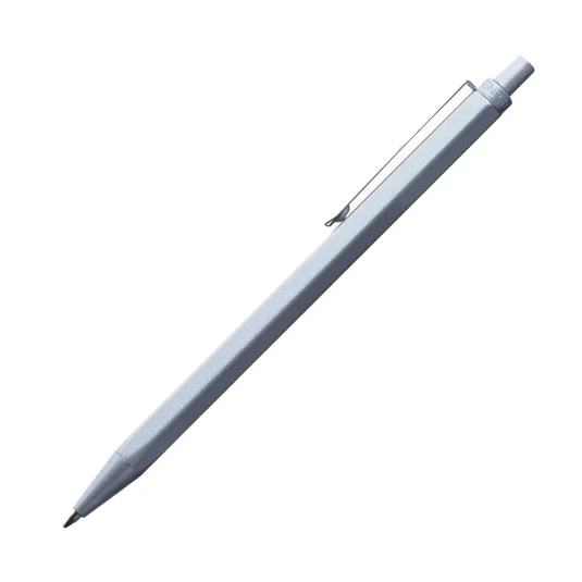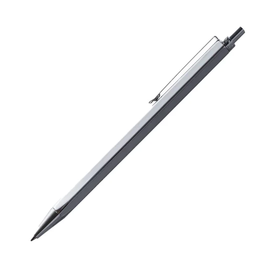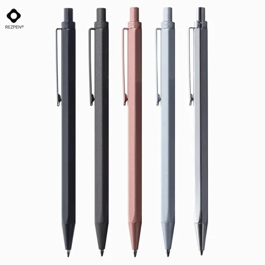 Swiss Design – ein hochwertiges, schlankes Schreibgerät mit nickelbeschichtetem Messingschaft und verchromten Beschlägen, ausgestattet mit einer Metall-Grossraum-REZPEN®-Mine (blau), die auf Schweizer Präzisionsmaschinen gefertigt wird und eine Schreiblänge von über 5'000 Metern bietet