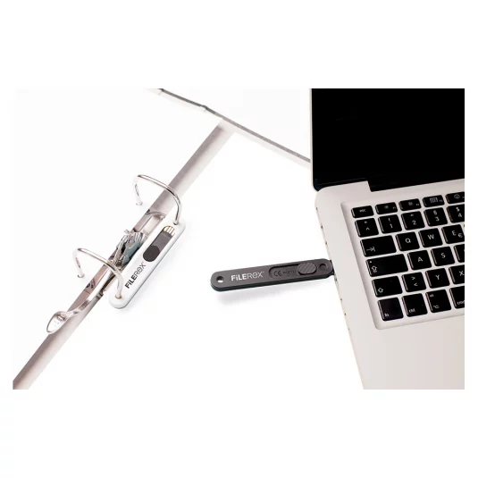 Praktischer USB-Stick der es ermöglicht, digitale Unterlagen direkt bei dedruckten Dokumenten in dem jeweiligen Ordner oder Hefter zu archivieren, erhältlich mit einer Speicherkapazität von 8 GB bis 64 GB