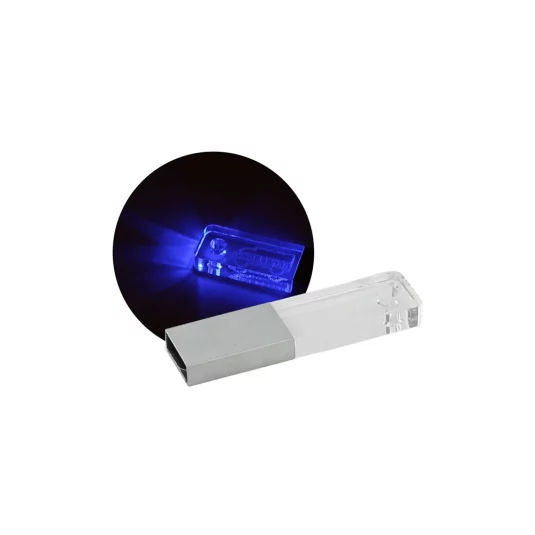 Leuchtende Daten! Stylischer USB-Stick aus Metall und Acryl, mit integrierter LED welche das transparente Acrylglas wahlweise in weiss, blau oder rot beleuchtet