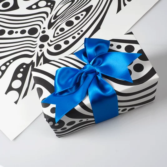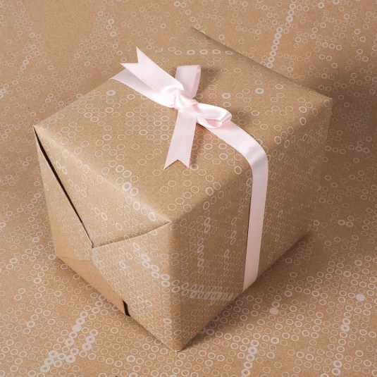 Nachhaltiges FSC-Geschenkpapier (Refutura blauer Engel + Recycling, matt, ISO-Weisse 100, 100% 80 g/m²), verpackt zu 250 Einzelblätter in Packpapier, einseitig bedruckt in Standard- oder jeder beliebigen Corporatefarbe