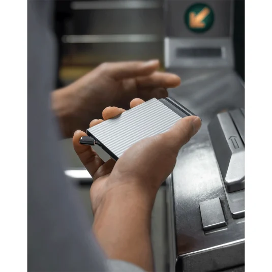 Das bewährte Original - mit innovativem Autolock-Mechanismus! Eleganter Kartenhalter aus Aluminium, speziell entwickelt, um auch Metallkarten zu halten - zum sicheren Aufbewahren von 4 Kreditkarten mit - oder 6 Kreditkarten ohne Prägung, schützt vollständig vor unbefugtem Auslesen von Daten auf RFID-Karten, hergestellt in Holland