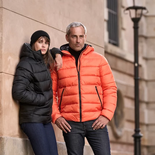 Wasserabweisende Unisex Steppjacke mit Kapuze und Stehkragen. Zwei grosse Fronttaschen und eine Innentasche mit Reissverschluss, Versteckte elastische Ärmelabschlüsse und elastischer Kordelzug mit Stoppern am Saum. Mattes, strukturiertes 1x1 Ripstop-Gewebe.