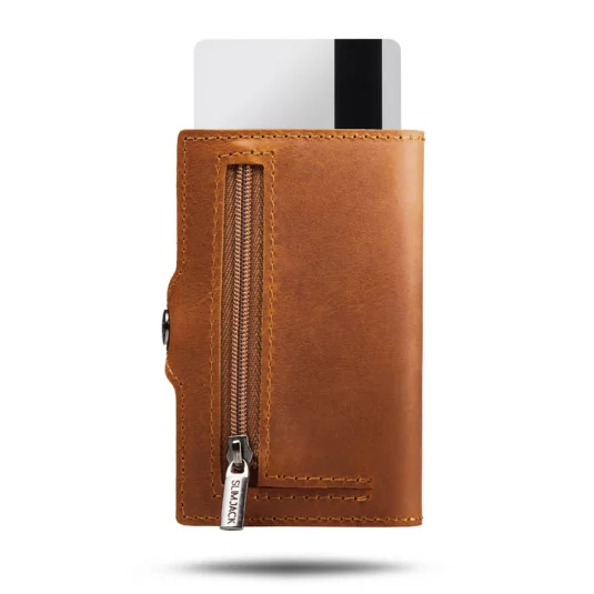 Schlanke Geldbörse aus hochwertigem Echtleder, mit RFID-Kartenfach aus Aluminum für die sichere Aufbewahrung und garantiertem Schutz vor Datenklau, schneller Kartenzugriff auf bis zu 6 Karten im Kartenhalter und 2 Karten im Innenfach, zusätzlicher Clip für Geldnoten auf der Innenseite und praktisches Münzfach auf der Rückseite, geliefert in schöner Geschenksbox