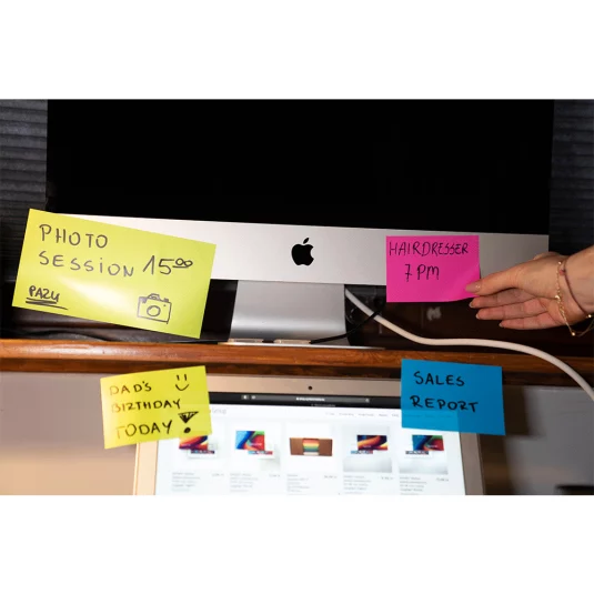 Innovativ und magisch - unersetzlich im Büro, in der Schule oder zu Hause! Umweltfreundliche, immer wieder haftende Notizblätter (50 Blatt/Block) welche durch eine hohe elektrostatische Ladung auch auf Oberflächen wie Holz, Metall, Glas, Ziegel, Zement, Stein oder auch strukturierten Wänden stark und sicher haften, 100 % rezyklierbar und frei von PVC und Klebstoffen, mit Umschlag aus holzfreiem, gestrichenem Feinpapier