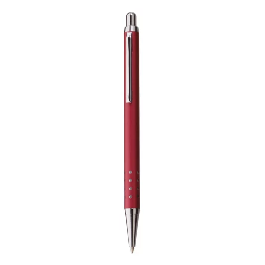 Elegantes, schlankes Schreibgerät im attraktiven Loch-Design mit glanzeloxiertem Metallgehäuse und Chrombeschlägen, mit Metall-Grossraummine (blau)