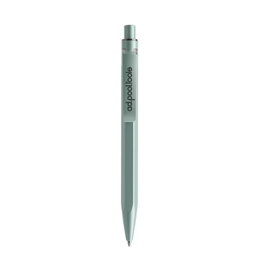 Mineralien statt Plastik! Swiss made, hochwertiger Kugelschreiber, hergestellt aus einem mit Mineralien angereicherten Spezialmaterial, was den rezyklierten Kunststoffanteil (farbig zu 50 %, schwarz oder weiss zu 100 %) um nachhaltige 60% reduziert, mit optimaler Griffzone, Metall-Clip und Kunststoff-Grossraummine (schwarz oder blau)