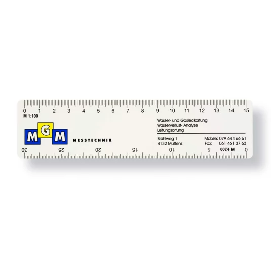 Kurzer, flacher (1mm) Lineal aus seidenmattem Polystyrol, auch glänzend oder in anderen Formaten erhältlich (Preise auf Anfrage)