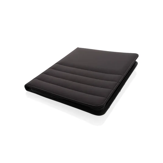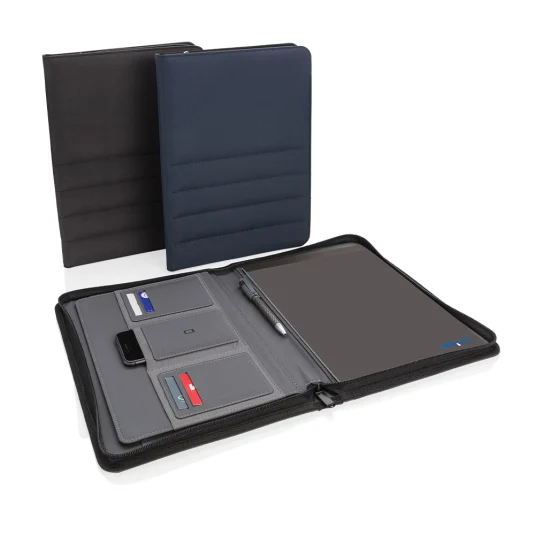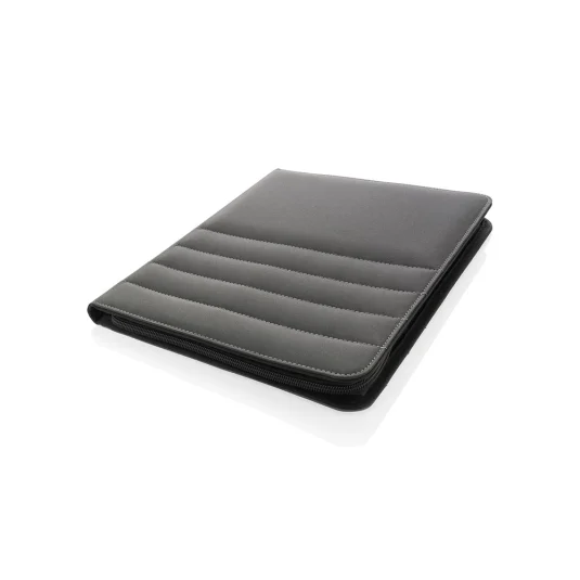 Nachhaltige Schreibmappe aus rezykliertem Polyester, hergestellt aus 10 PET-Flaschen, mit Reissverschluss und Organizer, Sleeve‑Fach, Telefontasche, zwei Zusatzfächern, vier Kartenfächern sowie einer Stiftschlaufe, inklusive Block mit 20 linierten Seiten (70 g/m2) aus rezykliertem Papier