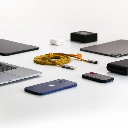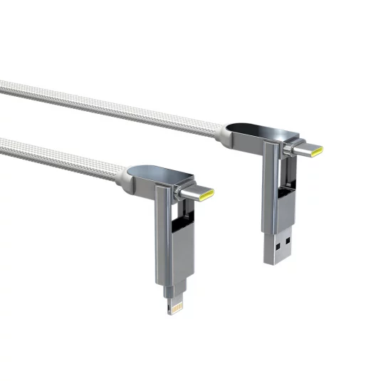 Innovatives "Ultra Fast Charging" Ladekabel mit Metallgehäuse und Aramid-Faser mit schneller Aufladekapazität von bis zu 100W von USB-C auf USB-C und bis zu 18W beim Aufladen von Apple Geräten, unterstützt sowohl das Aufladen als auch die Datenübertragung mit einer Geschwindigkeit von 480 Mbit, enthält USB A/USB C Male zu Lightning/Micro-USB A/USB C Male Stecker