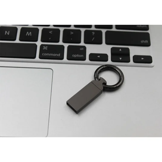Eleganter USB-Stick aus Metall, mit praktischem Karabiner zum Anhängen, erhältlich mit einer Speicherkapazität von 1 GB bis 128 GB in Version 2.