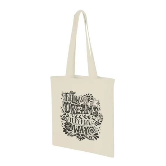 Robuste Einkaufstasche aus Baumwolle 140 g/m², mit langen Traggriffen (Trägerlänge 30 cm), OEKO-Tex zertifiziert, Fassungsvermögen 7 l