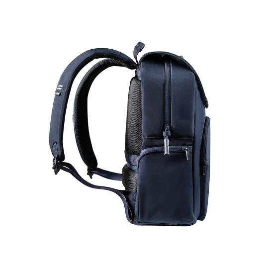 Stylischer Rucksack aus wasserabweisendem rezykliertem PET, mit diebstahlsicherem Klappdeckel und zusätzlich geschützten Reissverschlüssen, einem RFID-geschützten Fach für garantierten Schutz vor Datendiebstahl sowie einem 16"-Laptopfach, Inhalt 15 l