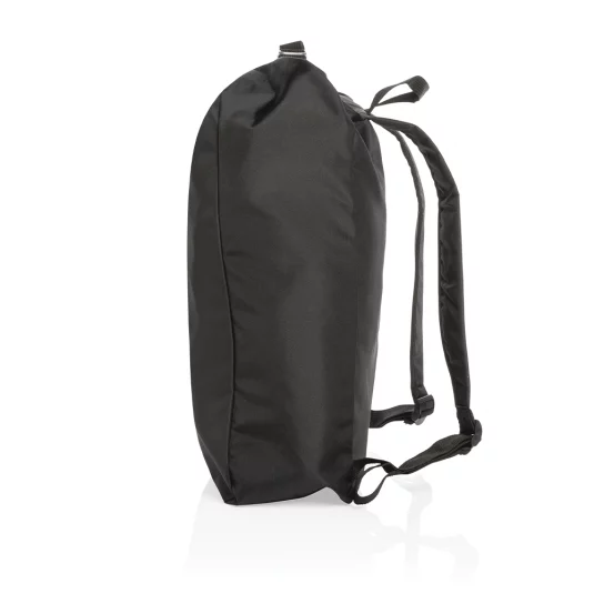 Stylisch und nachhaltig! Rucksack hergestellt aus 11 PET-Flaschen (300D rPET), mit geräumigem Hauptfach, kleinem Aussenfach, verstellbaren Schultergurten und trendigem Wickelverschluss