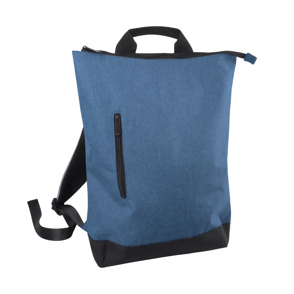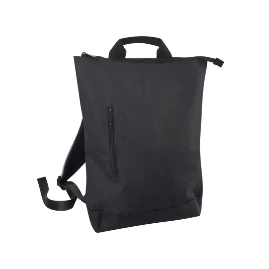 Trendiger City-Rucksack hergestellt aus rezyklierten PET-Flaschen, mit grossem Hauptfach, seitlichem Aussenfach, wasserfesten Reissverschlüssen und verstellbaren Henkeln, Mindestbestellmenge 250 Stück