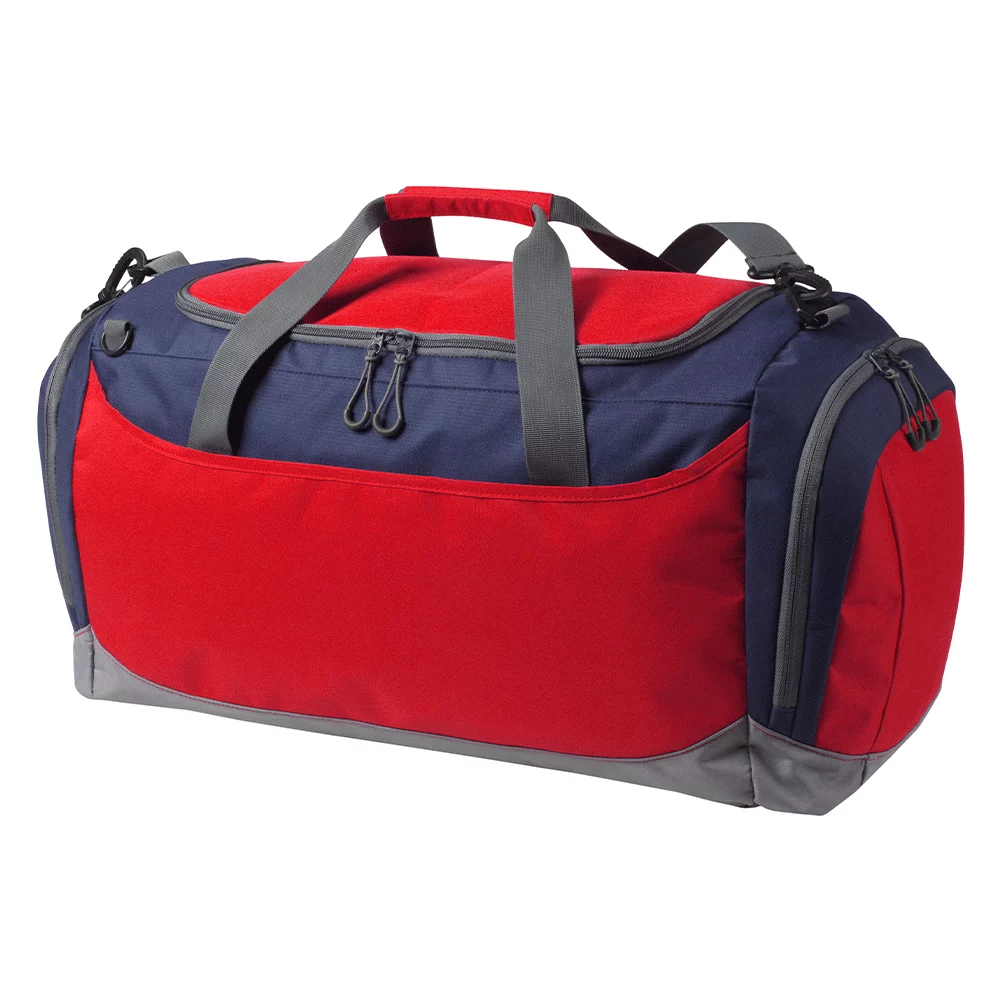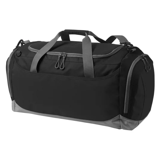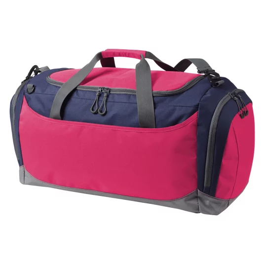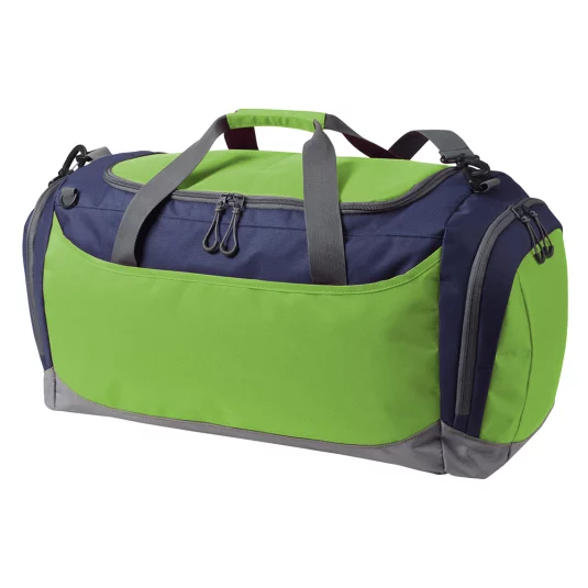 Tasche aus Polyester mit grossem Hauptfach, 2-Wege Reissverschluss, Vortasche mit Reissverschlussfach, zwei Seitentaschen, eine davon mit Schuhfach, abnehmbarer, längenverstellbarer Umhängegurt mit bequemem Schulterpolster