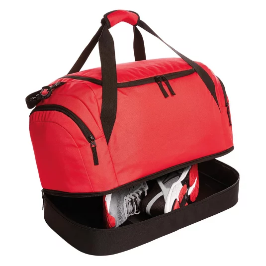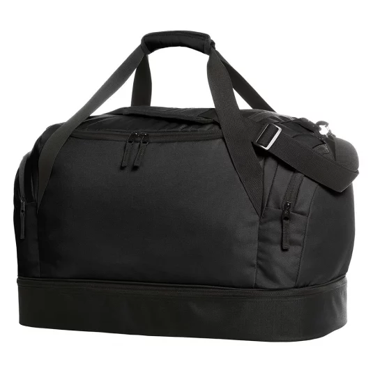 Klassische Sport-und Freizeittasche aus Polyester, mit grossem Hauptfach mit 2-Wege-Reissverschluss, mit stabilem, getrenntem Bodenfach, Reissverschluss-Innenfach, zwei Seitentaschen, starken Tragegriffen sowie abnehmbarem, längenverstellbarem Schultergurt