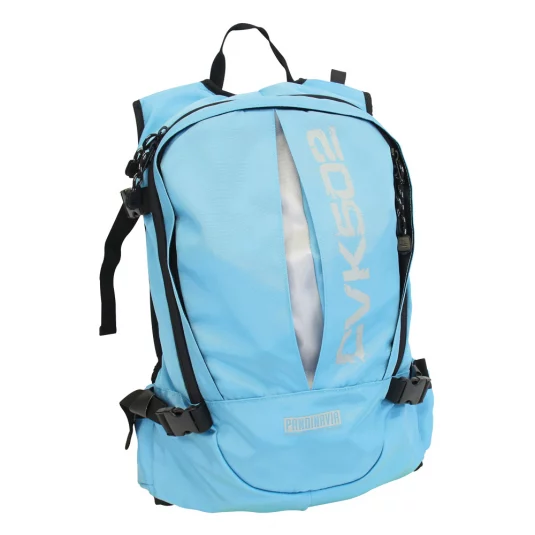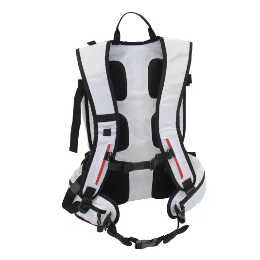 Attractive leisure backpack of polyester 600D, with comfortable padded back, large front pocket with organizer elements and wide hip strap with zipper pocket, fabric arrangement on the front can be personalized, minimum order 500 pc