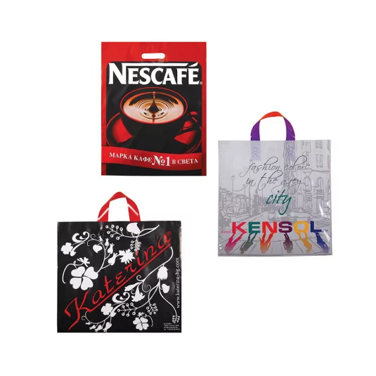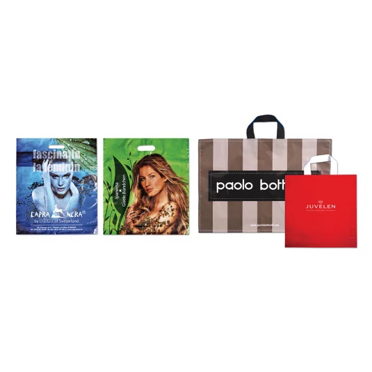 Practical bags of LDPE 80 g/m2, available with grip holes or handles, various sizes available (price on request), minimum order 5000 pc
