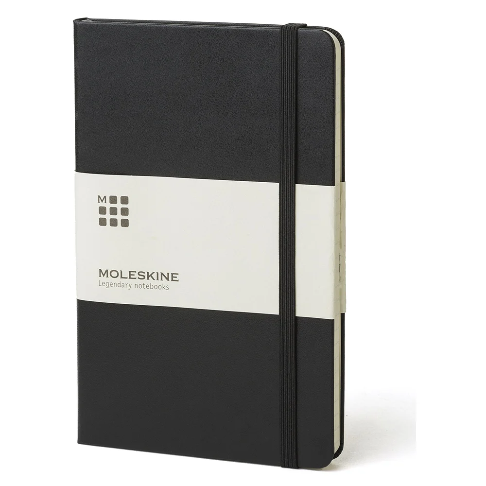 Notebook with the characteristic elastic closure band as well as the paper pocket at the end of the book 208 pages ruled non standard DIN format