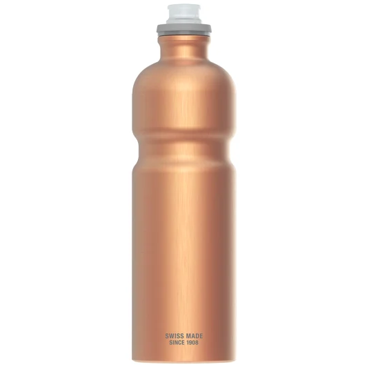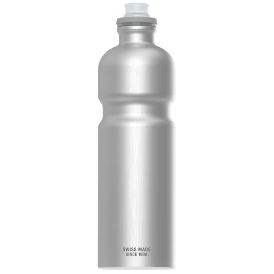 Recycled for Cycling! Swiss Made, developed and produced in Switzerland - extremely light and stable MOVE MyPlanet™ bottle, sustainably made from 100% recycled aluminium, opening and closing works simply by mouth, capacity 0.75 l