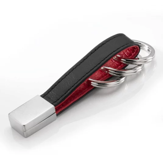 Keyring of leather and metal, with sophisticated twist closure
