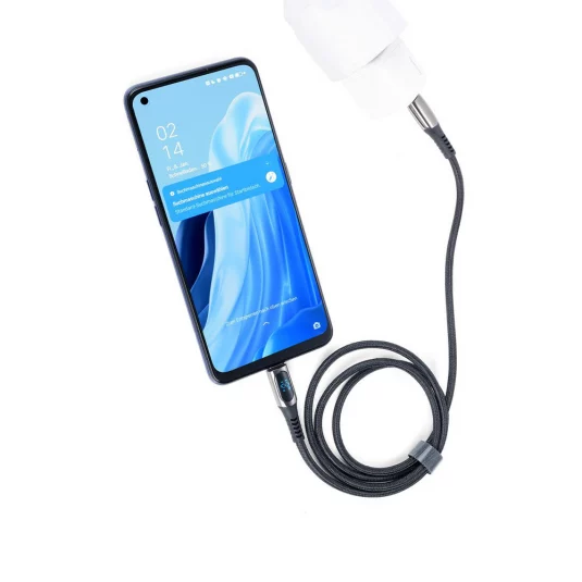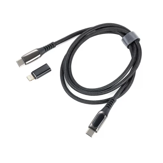 High-speed USB-C charging cable, textile-coated with a charging capacity of up to 100W, digital display of charging power and USB-C to Lightning adapter
