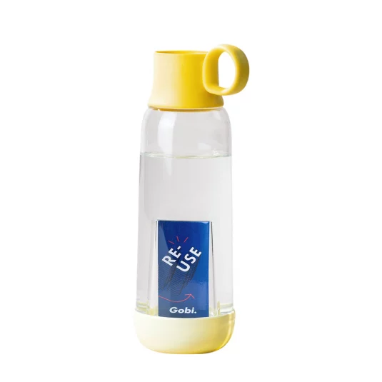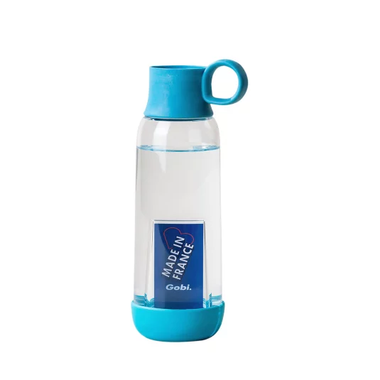Light bottle of Tritan (BPA-free) in cool design, with practical handle and original insert for personalization in the bottle base, dishwasher safe and odorless