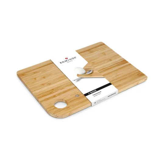 Clever, safe and stylish – the all-in-one wooden breakfast board with integrated egg holder and magnet for a metal egg spoon.