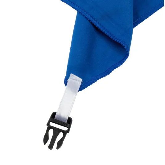 Small, ultra-light microfiber cloth made from recycled PET (80%) and polyamide. Absorbent and quick-drying. Supplied in a black pouch with Velcro closure and carabiner.