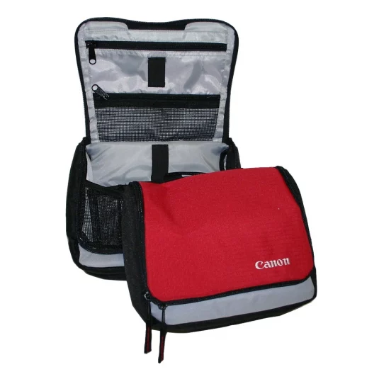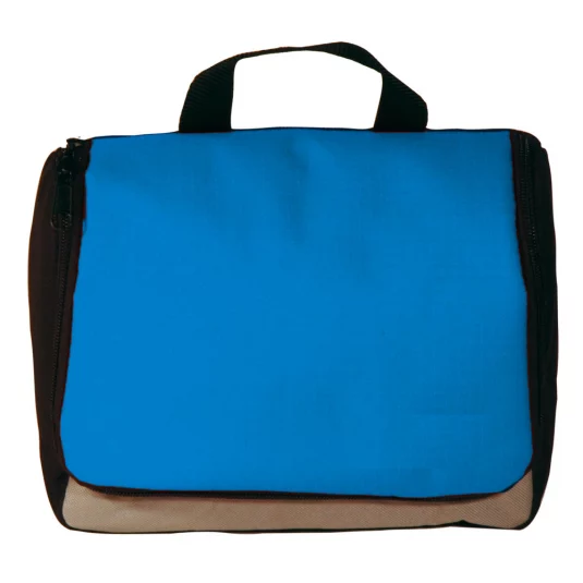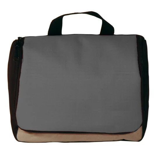 Toiletries case of sturdy nylon, folding, with metal hook for hanging, inside with various compartments and partitions, minimum order 250 pc