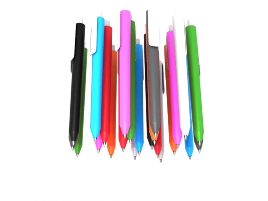 Swiss made, elegant retractable ballpoint pen of ABS plastic with clip, from 10,000 pc can be any Pantone color, minimum order 3000 pc