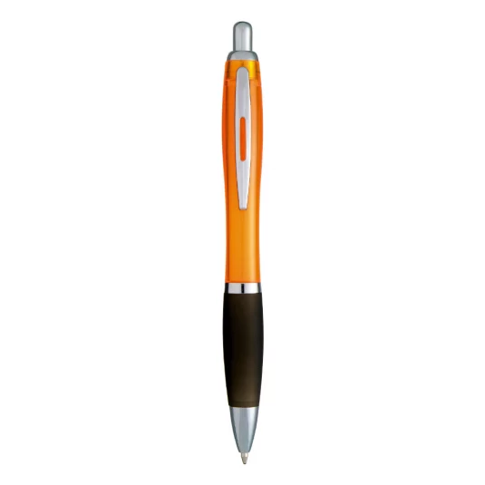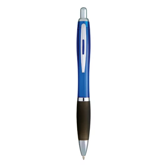 Elegant pen, sits well in the hand thanks to its ergonomic shape and rubberized grip zone, push button, tip and clip of metal, with plastic large capacity cartridge (black)