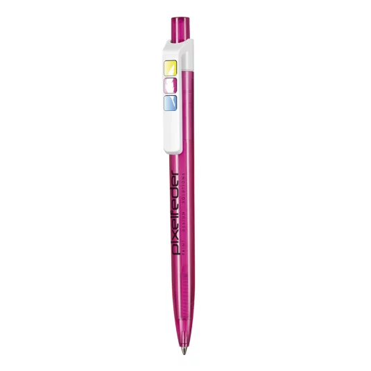 High-gloss retractable ballpoint pen with Prisma look and quality cartridge (black and blue), transparent pusher
