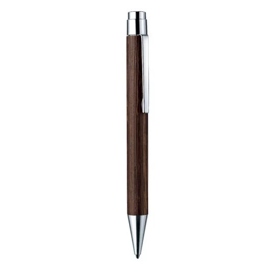 Stylish ballpoint pen of FSC®-certified wood, combined with elegant metal, with shiny metal clip and large metal cartridge (black), available in natural brown ash, whitewashed or dark wenge