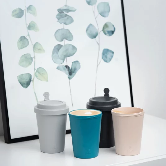 For the protection of the oceans - we give waste a value! Sustainable to-go cup made of #tide ocean material® developed in Switzerland (100% recycled PET and plastic), reusable, dishwasher-safe and - thanks to the matching spoon which also serves as a lid - leak-proof