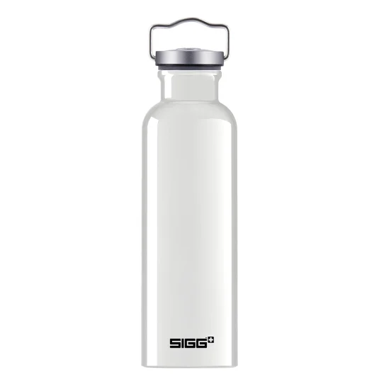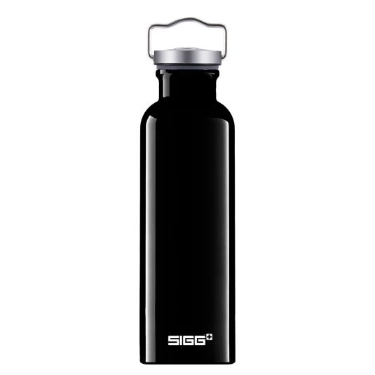 Swiss Made - the original! Lightweight, robust, one-piece drinking bottle made sustainably from 100% recycled aluminium, with practical wide neck opening for easy cleaning and a leak-proof screw cap (choice of silver or black), also suitable for carbonated drinks or fruit juices, capacity 0.75 l