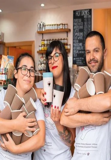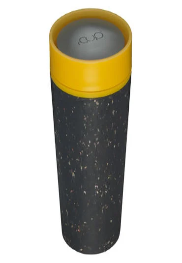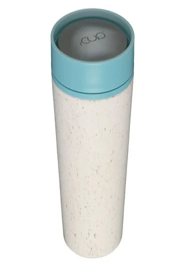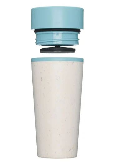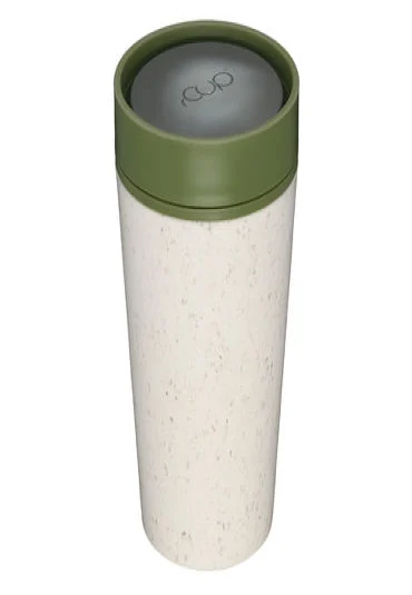 Sustainable, double-walled coffee cup-to-go, made from recycled disposable coffee cups, with leak-proof 360-degree screw cap (one-hand-click cap), dishwasher-safe, capacity 3.