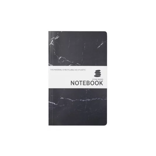 This notebook is made from 80% stone waste, plus a little resin (HDPE) to bind the stone powder. The result is a cradle-to-cradle certified material that can be infinitely recycled. Stone paper uses far fewer resources (no trees, no water, no bleach, and no toxins) in production, and it can be re-used over and over again.