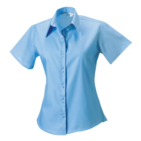 Russel short-sleeved women's blouse of no-iron fabric, fashionably cut collar, double button closure, fitted