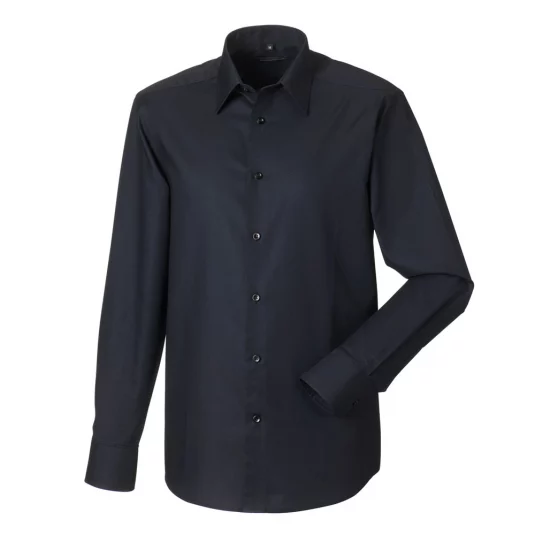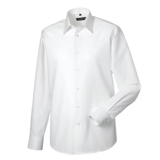 Russel long-sleeved men's tailored shirt, collar stiffened with collar stays, with two-button adjustable cuffs, rounded hem