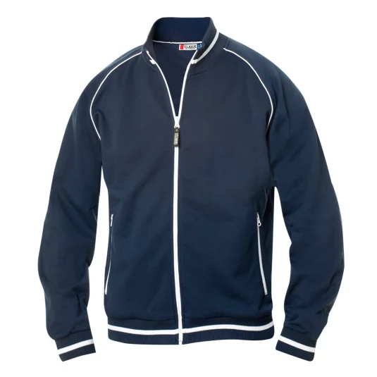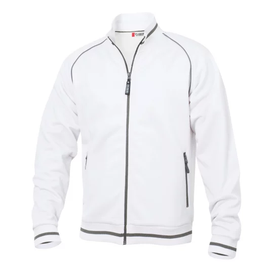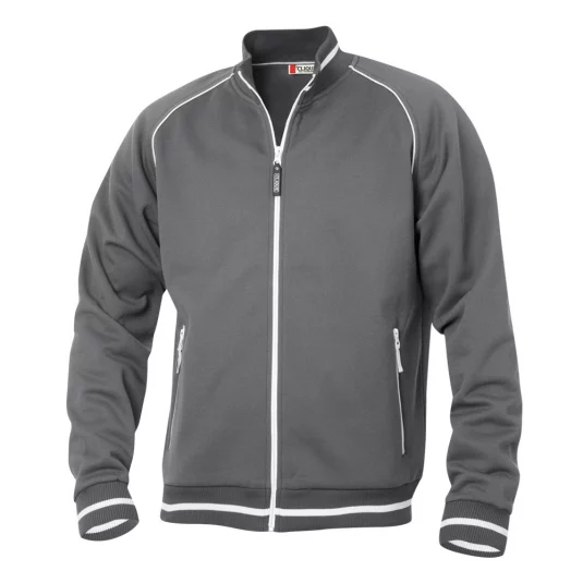 Clique unisex jacket with structured knit, combed interior, contrasting stripes on collar, band and cuffs, 2 side pockets with zipper in contrasting color